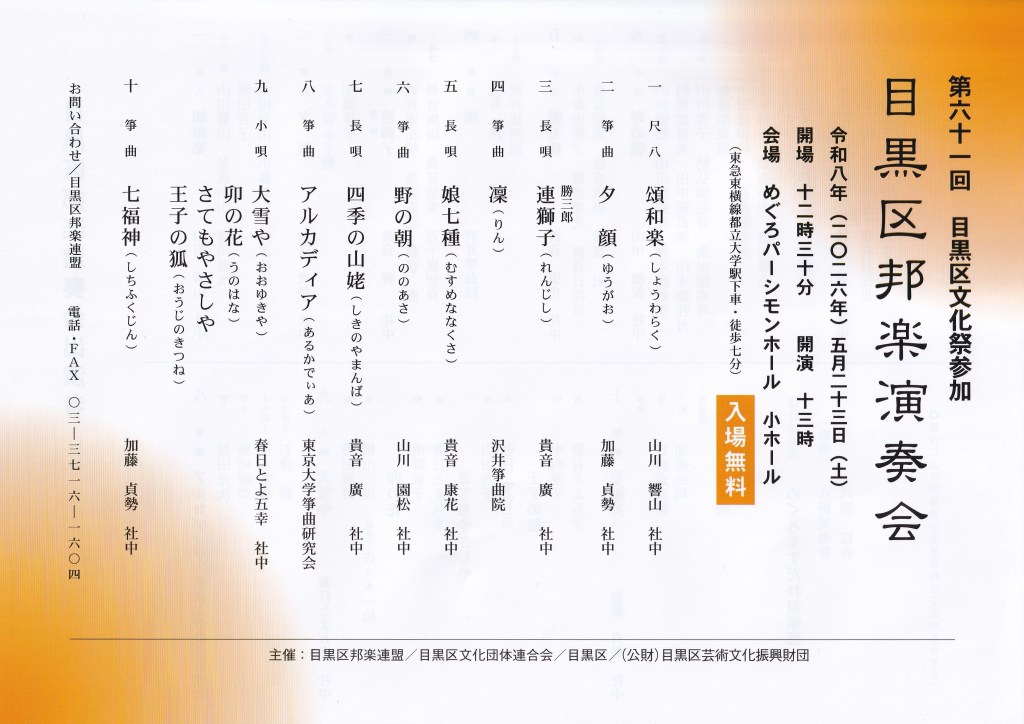 目黒区邦楽連盟 Tel・Fax 03-3716-1604
